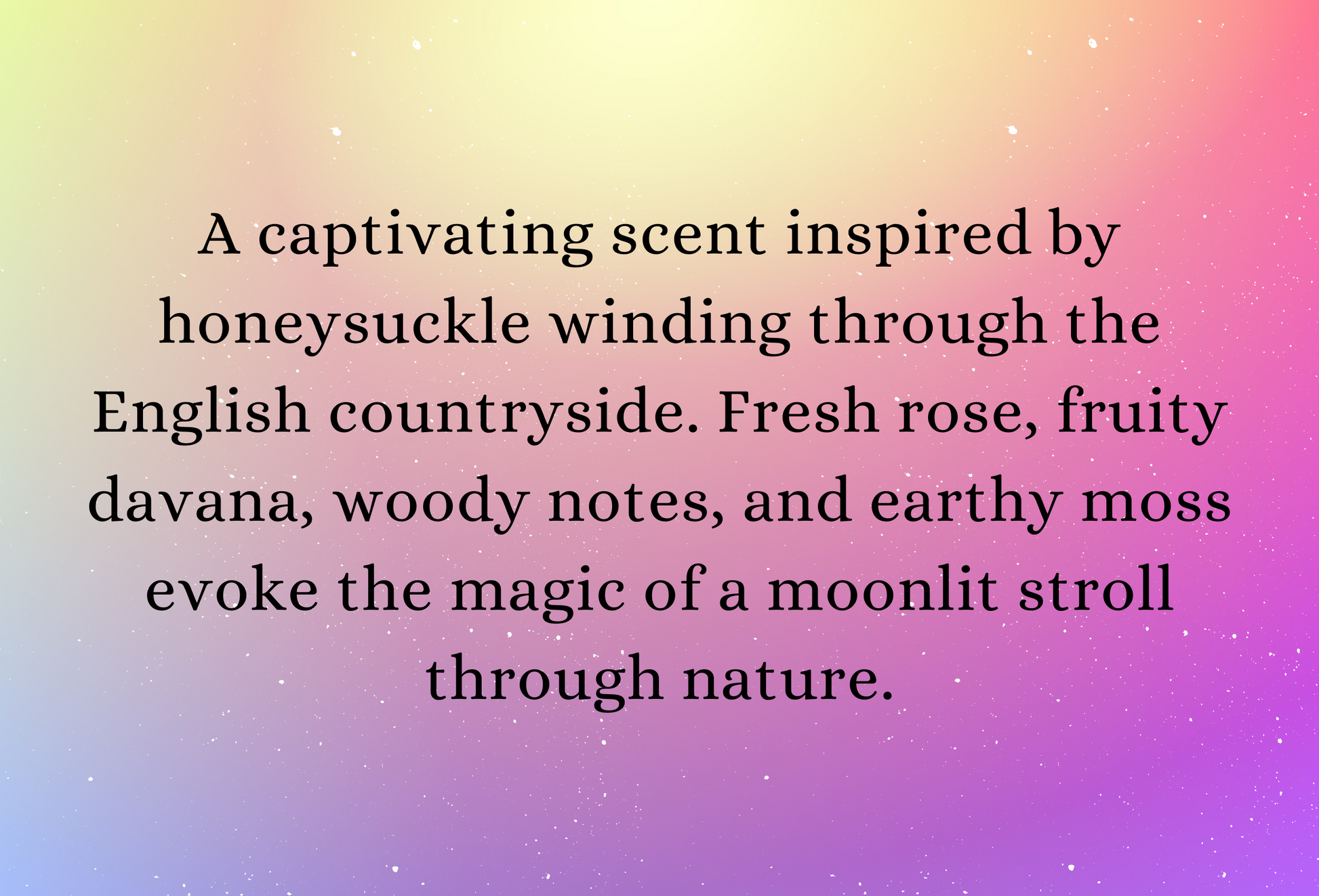 A captivating scent inspired by honeysuckle winding through the English countryside. Fresh rose, fruity davana, woody notes, and earthy moss evoke the magic of a moonlit stroll through nature.