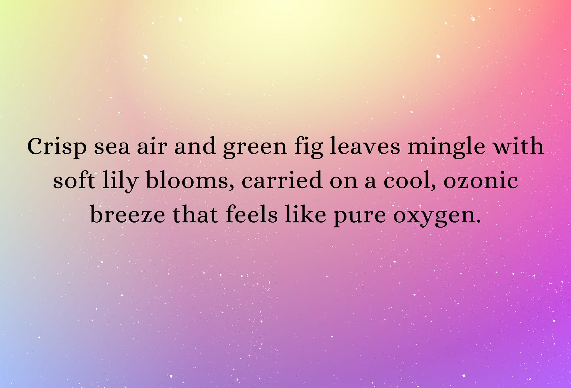 Crisp sea air and green fig leaves mingle with soft lily blooms, carried on a cool, ozonic breeze that feels like pure oxygen.